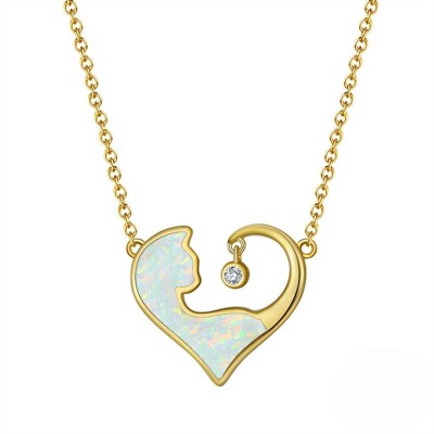 Opalata Sterling Silver 'I Love You Forever' CZ Heart 18" Pendant Necklace - White Opal - White