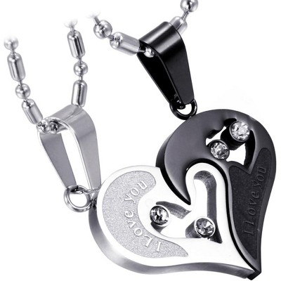 Guili Halloween Sterling Silver Black And White Cubic Zirconia Heart Pendant