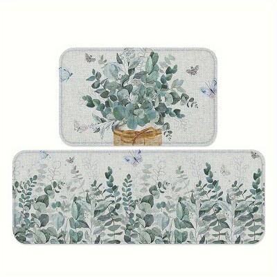 Lomsoe 2pcs Green Spring and Summer Kitchen Set Mat, Suitable for Bedroom Living Room Dining Room Bathroom Entrance, Valentine's Day Gift.