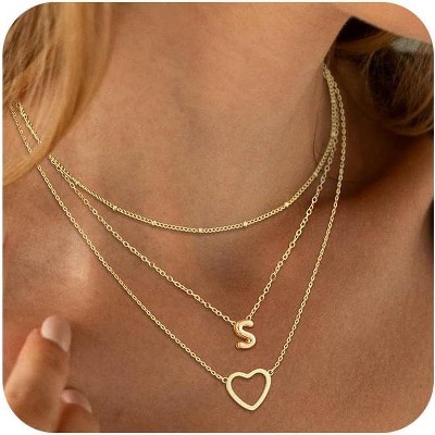 14K Gold Plated Initial Necklace, Layered Heart & A-Z Letter Personalized Gift for Women