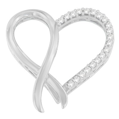 Haus of Brilliance Silver 1/6 cttw Diamond Heart and Ribbon Pendant Necklace