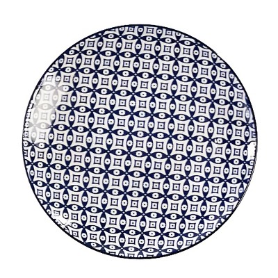 Slickblue Small Round Plate, Blue and White Design, Moorish or Basket Weave Pattern, 6.5" Diameter