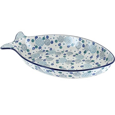 Blue Rose Polish Pottery E23 Ceramika Artystyczna Large Fish Dish