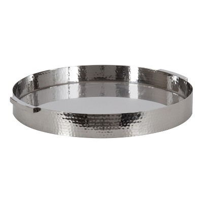 Unique Bargains Halloween Christmas Mirror Tray Round Metal Perfume Tray Large Silver Tone
