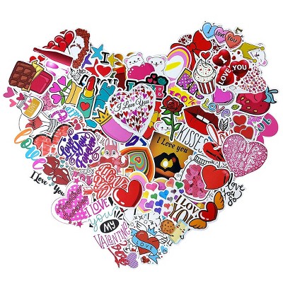 Wrapables Waterproof Vinyl Stickers for Water Bottles, Laptop, Phones, Skateboards, Decals for Teens, 100pcs, Valentine Hearts