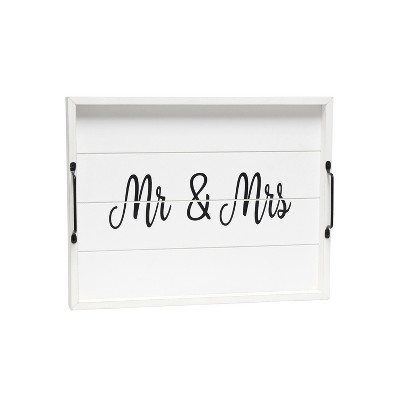 HomeRoots 16" Black And White Mr. and Mrs. Serving Tray With Handles