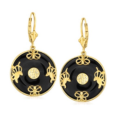 Ross-Simons Black Agate "Good Fortune" Butterfly Drop Earrings in 18kt Gold Over Sterling