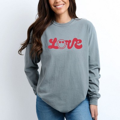 Simply Sage Market Women's Love Smiley Face Long Sleeve Garment Dyed Tee