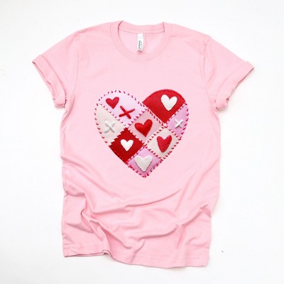 Heart Stitching Patchwork Print - Women's Short Sleeve Graphic T-Shirt