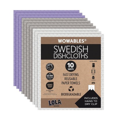 LOLA Wowables XL Swedish Dishcloths, 36 Reusable Eco Cleaning Cloths, 11" x 10", Ultra Absorbent Cellulose Sponge Towel, Compostable, Made in Germany