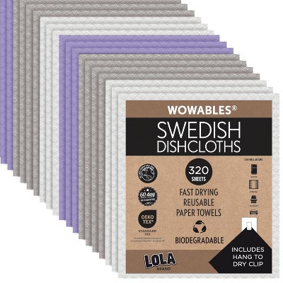 LOLA Swedish Dishcloths, 20 Pk Biodegradable Reusable Paper Towels Absorbent Cellulose Kitchen Sponge Cloths Zero Waste Odor Free, Made in Germany