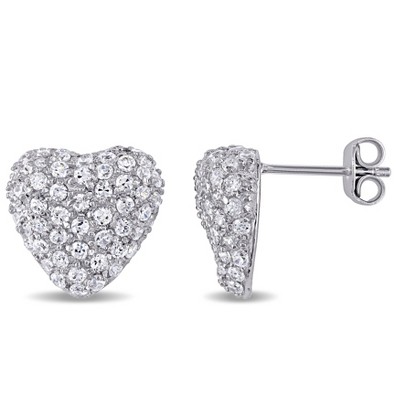 EVERLY JEWELRY | Sterling Silver V1969 ITALIA Insignia Cubic Zirconia Heart Stud Earrings