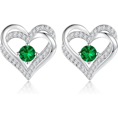 Forever Love Heart Stud Earrings, Sterling Silver Birthstone for Women Gift for Christmas, Mother's Day