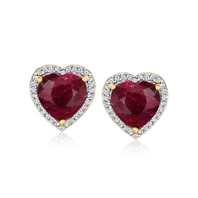 Ross-Simons 5.50 ct. t.w. Ruby and .23 ct. t.w. Diamond Heart Earrings in 18kt Gold Over Sterling