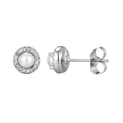 Adornia Silver Plated Freshwater Pearl CZ Halo Stud Earrings