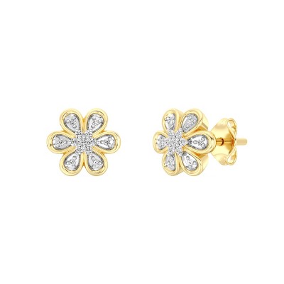 Guili 14K Gold Plated Cubic Zirconia Floral Stud Earrings for a Stylish and Elegant Jewelry Look with Sparkling Glitter for Any Occasion