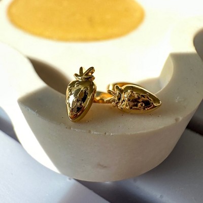 Mini Strawberry Stud Earrings in Gold, Rose Gold, Silver - Honeycat