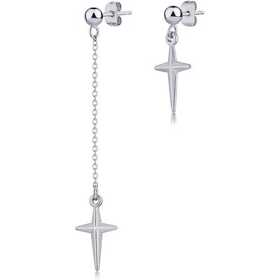 Asymmetric Cross Dangle Earrings - Unique Minimalist Punk Geometry Jewelry with Ball Stud, Hypoallergenic