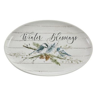 HomeRoots 15" White Faux Wicker Round Serving Tray