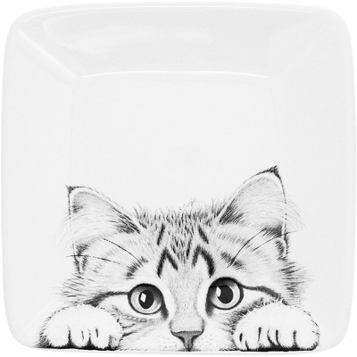 Sagebrook Home 10" Ceramic Cat Trinket Tray in White and Gold - Cat Shaped Jewelry Holder - Great Gift for Cat Lovers