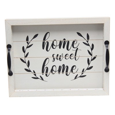 Olivia & May Set of 2 Rectangular Wood Tray with Inlay and Metal Handles Black : Bohemian Carved, Indoor Use Decor