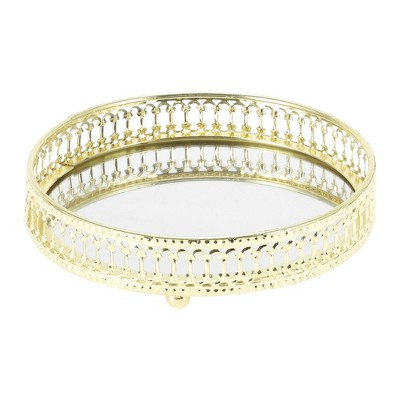 Unique Bargains Halloween Christmas Mirror Tray Round Metal Perfume Tray Large Gold Tone 1 Pc