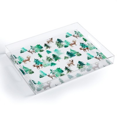 Ninola Design Deer Forest Watercolor Acrylic Tray - Deny Designs