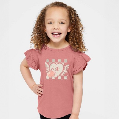 Heart Bubblegum Checkered - Flutter Sleeve Graphic T-Shirt