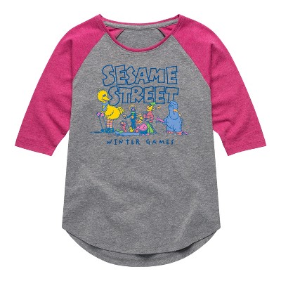 Girls' - Sesame Street - Winter Games Shirt Tail Raglan Graphic T-shirt