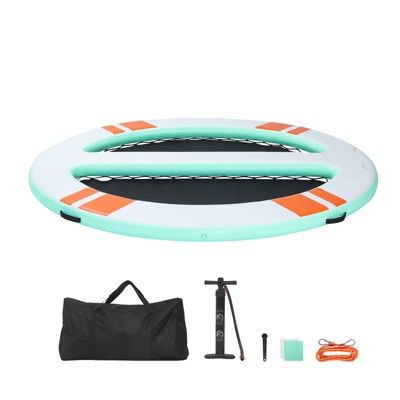 VEVOR Inflatable Floating Dock, ø8FT Inflatable Dock Platform with ø5FT Trampoline Mesh Pool, Non-Slip Floating Platform Water Mat
