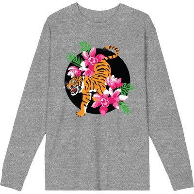 Natural World Tiger & Flowers Adult Crew Neck Long Sleeve Tee