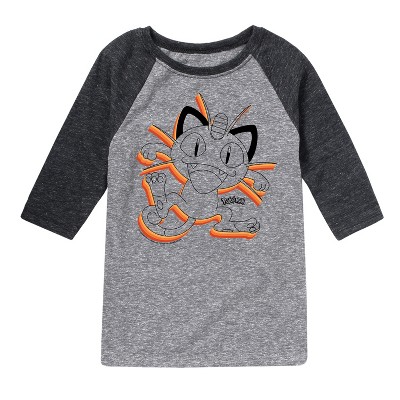 Boys' - Pokémon - Happy Meowth Retro Raglan Graphic T-Shirt