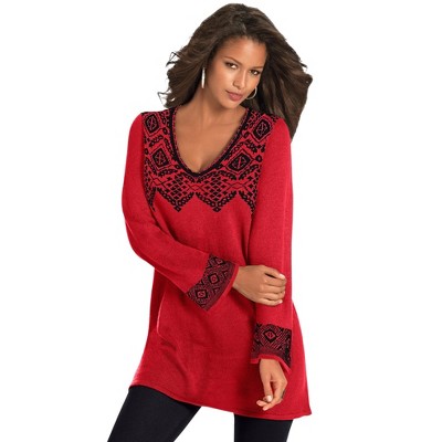 Women's Sequin & Jacquard Christmas Sweater - Sparkly Embroidered Holiday Knit Long Sleeve Party Pullover Ugly Xmas Cozy Winter Top