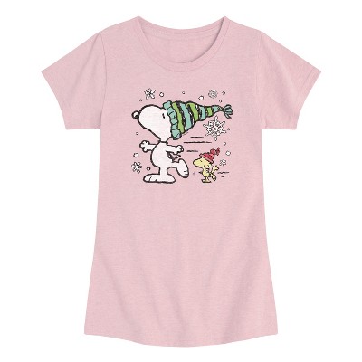 Girls' - Peanuts - Snoopy Woodstock Skate Fitted Short Sleeve Graphic T-Shirt