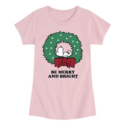 Girls' - Peanuts - Be Merry & Bright Fitted Short Sleeve Graphic T-Shirt