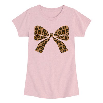 Girls' - Instant Message - Leopard Print Bow Fitted Short Sleeve Graphic T-Shirt