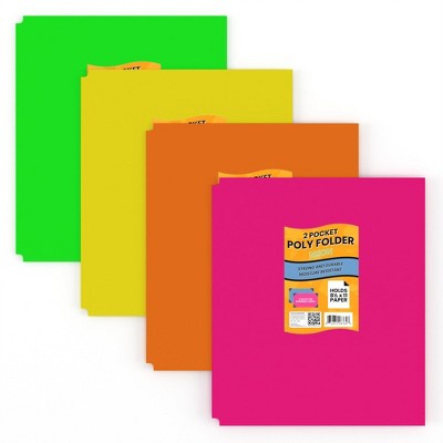 Neon Poly Pocket Folders - 2-pockets With Business Card Slots, Assorted Neon Colors (48 Packs)
