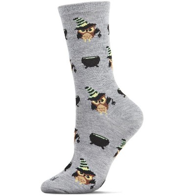 Memoi Women's Witchy Owl Festive Crew Socks Imperial