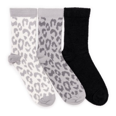 Anna-Kaci Women's 3-Pair Ribbed Crew Socks Set Soft Stretch Knit Fabric Minimal Everyday Comfort Socks - Gray