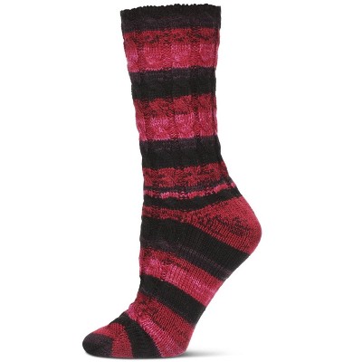 Memoi Women's Thin Stripe Chenille Non-Skid Slipper Crew Sock