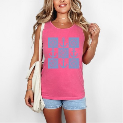 Simply Sage Market Anchor Wheel Grid Garment Dyed Tank