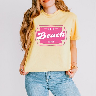 It's Beach Time Pink - Women's Boxy Crop Top Graphic T-Shirt