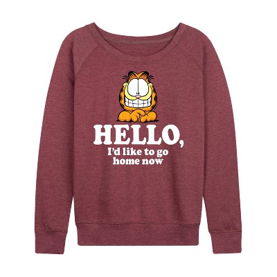 Women's - Garfield - Hello Go Home Now Lightweight French Terry Wide Neck Long Sleeve Graphic Shirt