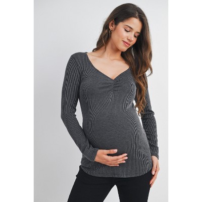 Hello Miz Women's Henley V Neck Roll Tab Button Maternity Nursing Top