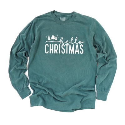 Simply Sage Market Women's Hello Christmas Trees Long Sleeve Garment Dyed Tee