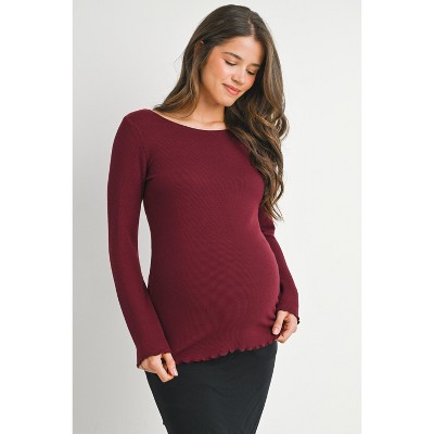 Hello Miz Women's Long Sleeve Crew Neck Ribbed Maternity Top