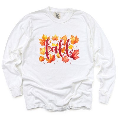 Simply Sage Market Fall Leaves Watercolor Garment Dyed Long Sleeve
