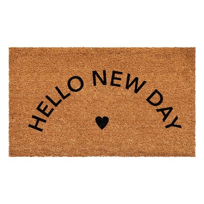 HomeRoots 17" X 29" Brown And Natural Heart Hello Sunshine Outdoor Coir Door Mat