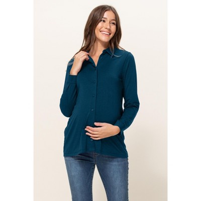 Hello Miz Women's Collared Button Up Long Sleeve Maternity Top