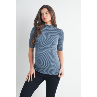 Hello Miz Women's Ribbed Mock Neck Elbow Sleeve Maternity Top